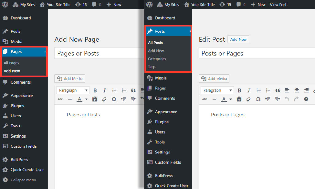 Similarly to add pages to your website go to pages and then click on add new and now these are the same thing as the post you just add a title and then you can put your content under after your page is done you have everything you want on it just click on publish now.